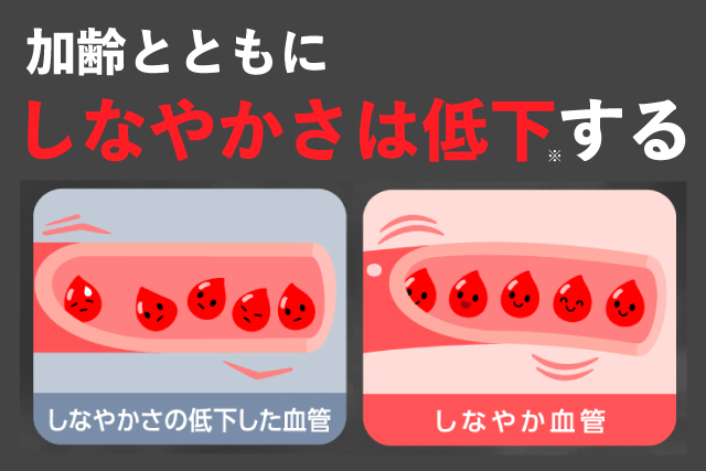 ※加齢とともに低下する血管のしなやかさ(血管を締め付けた後の血管の拡張度)※イメージ